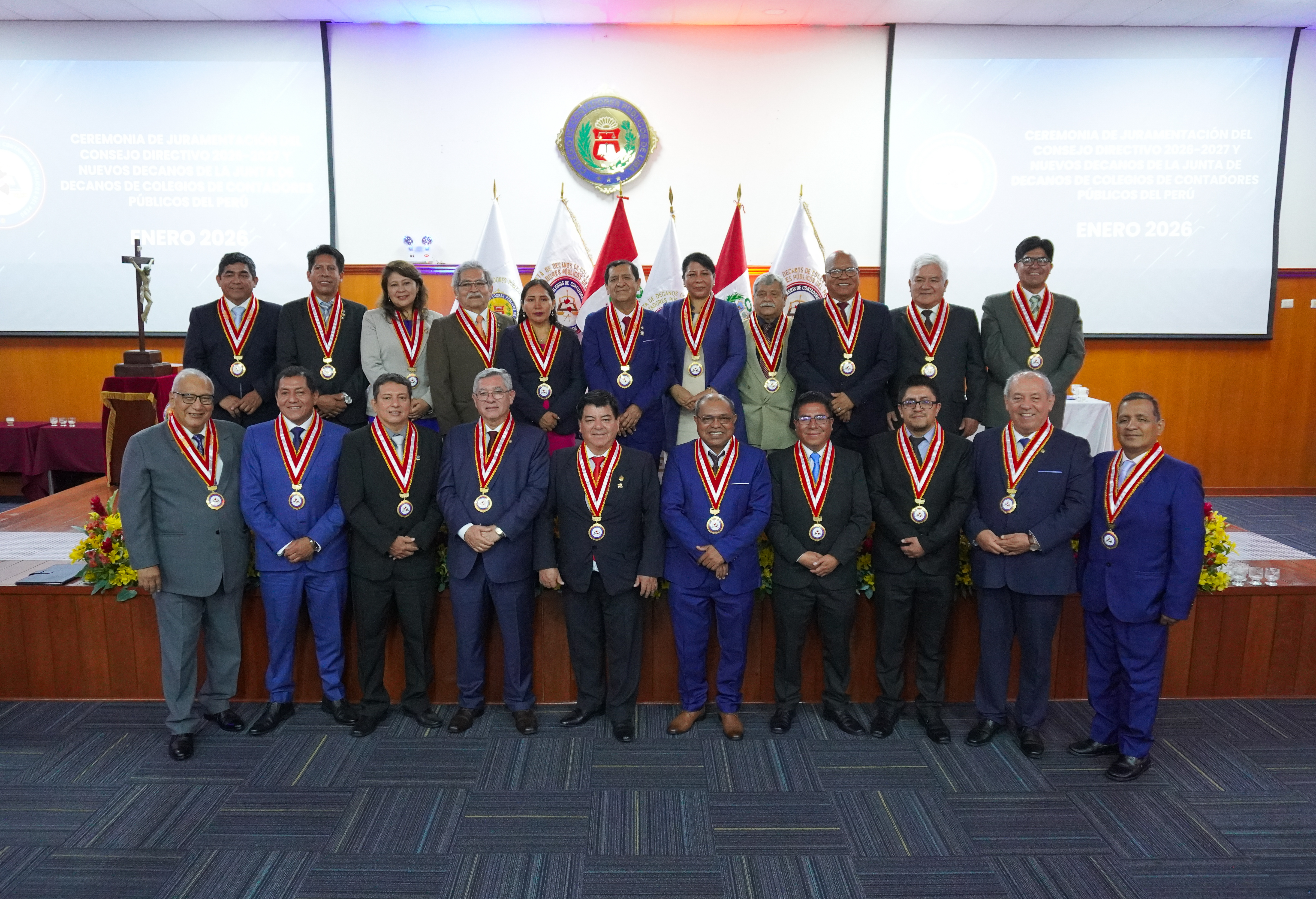 La Junta de Decanos de Colegios de Contadores Públicos del Perú (JDCCPP) realizó la Ceremonia de Juramentación del Consejo Directivo para el período 2026–2027, así como la juramentación, incorporación y ratificación de los decanos de los Colegios Departamentales del país, en un solemne acto protocolar que reafirmó la unidad y fortaleza institucional de la profesión contable en el Perú.