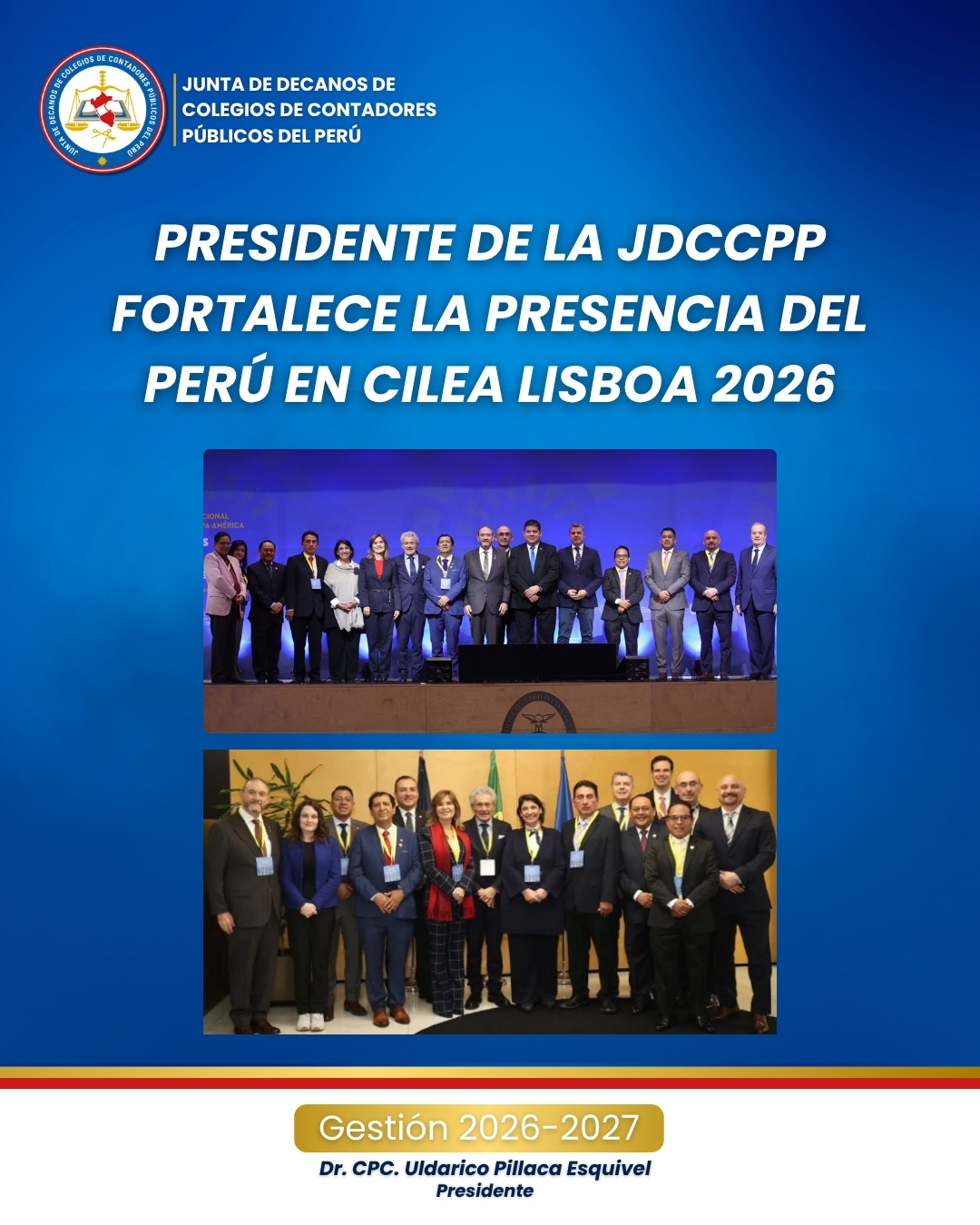 El Dr. CPC. Uldarico Pillaca Esquivel, presidente de la JDCCPP, participó en CILEA Lisboa 2026 (Portugal), destacando la presencia del país en este importante espacio de articulación entre Europa y América Latina. Durante la Asamblea General del CILEA, realizada el 17 de marzo de 2026, se revisaron avances institucionales y se definieron líneas de acción para el año.