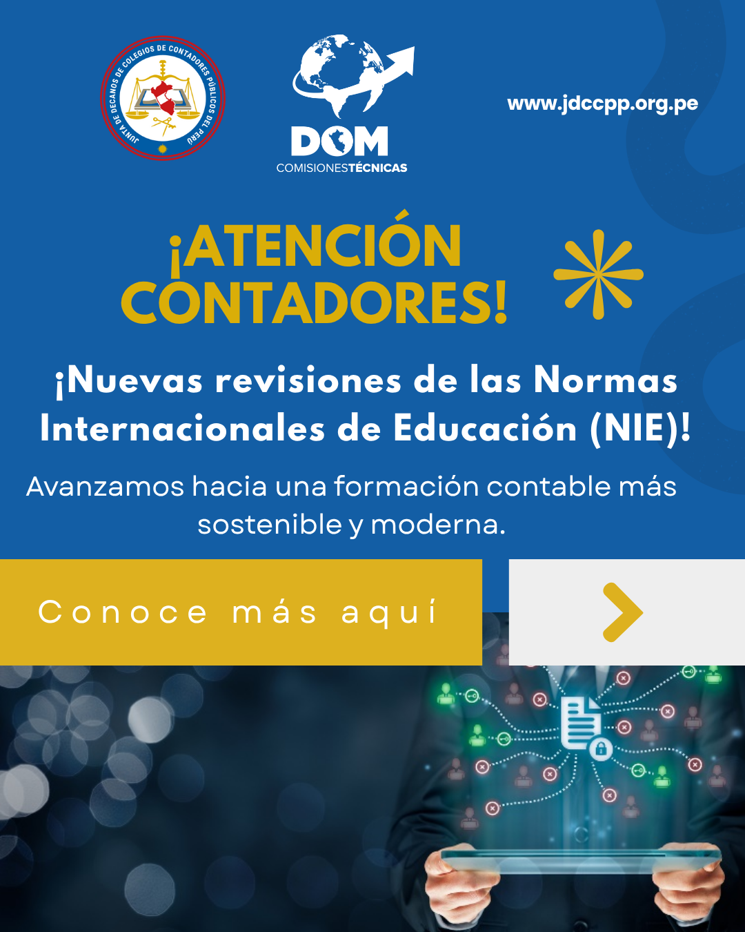 Descarga también la Resolución N.º 004-2021 JDCCPP/AG del 29 de marzo de 2021, que aprueba la adopción de las NIE (versión 2019, con revisiones al 2021): https://jdccpp.org.pe/detalle-publicacion.php?id=202