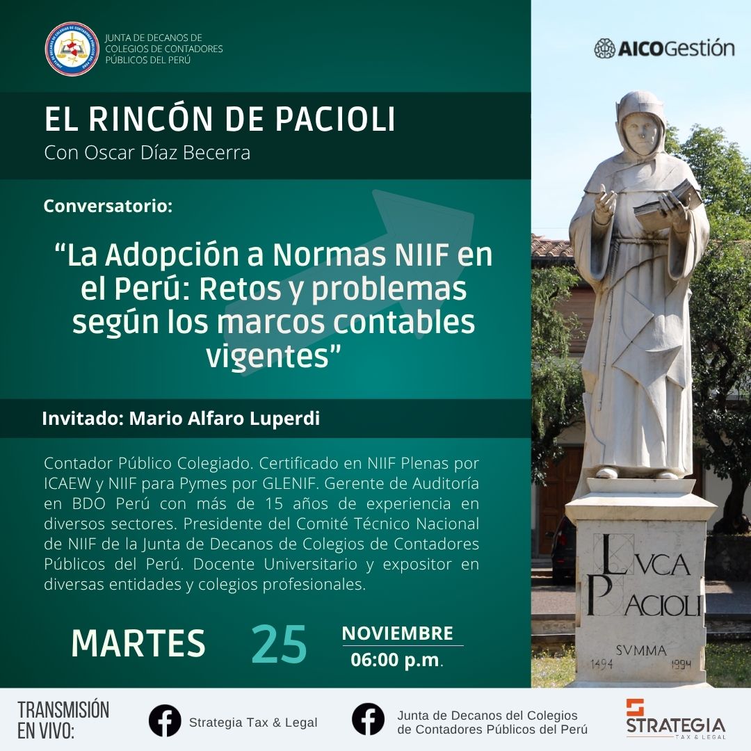 Invitado especial: Mario Alfaro, Contador Público Colegiado, Gerente de Auditoría en BDO Perú y Presidente del Comité Técnico Nacional de NIIF de la Junta de Decanos de Colegios de Contadores Públicos del Perú.