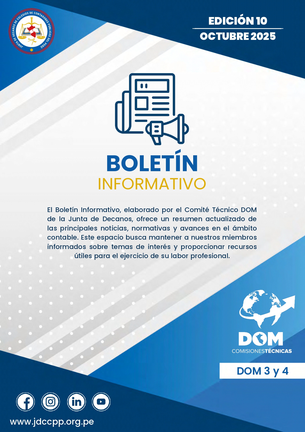 Octava edición del Boletín Informativo DOM – Agosto 2025  Una nueva entrega que impulsa la excelencia técnica y académica de la profesión contable en el Perú y la región. DOM 7: Normas Internacionales de Información F...